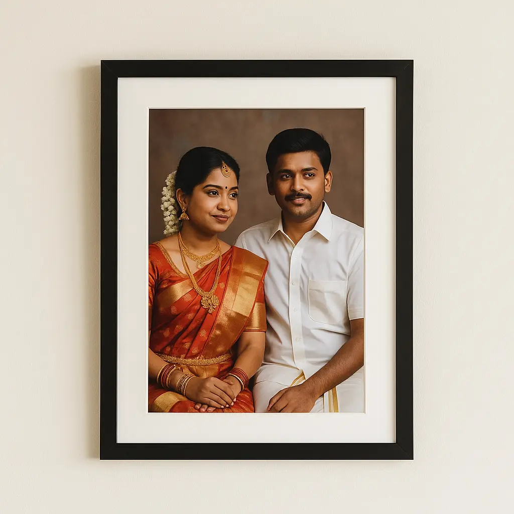 This elegant personalized photo frame features a sleek black matte border and a white mount, perfect for displaying your favorite couple photo, family portrait, or special occasion memory. Whether you’re looking for a custom gift for an anniversary, birthday, housewarming, or personalized home decor, this frame is a meaningful and beautiful choice.